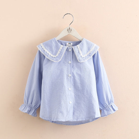 Children Clothing 2022 New Spring Autumn 2 3 4 6 8 10Years Child Turn-Down Neck Tops Kids Baby Girls Long Sleeve Blouse Shirt