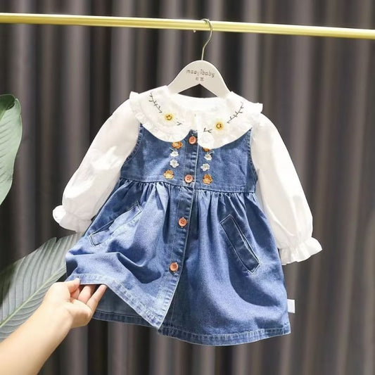 Humor Bear Girls Dress NEW Spring Autumn Long-Sleeve Solid Color Denim Casual Loose Pocket Toddler Kids Clothes