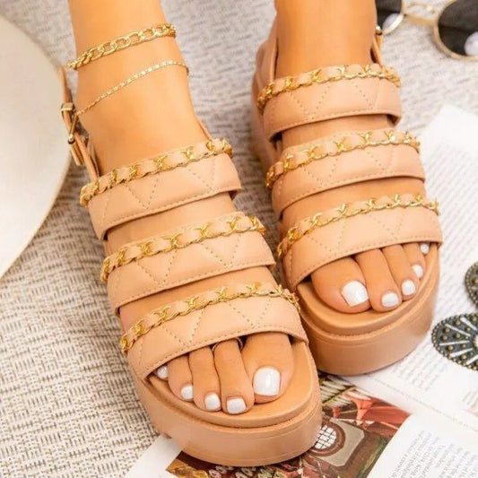 New Women's Sandals Fashion Metal Chain Casual Flat Shoes Comfortable Platform Buckle Roman Sandals Chaussure Ete Femme 2022