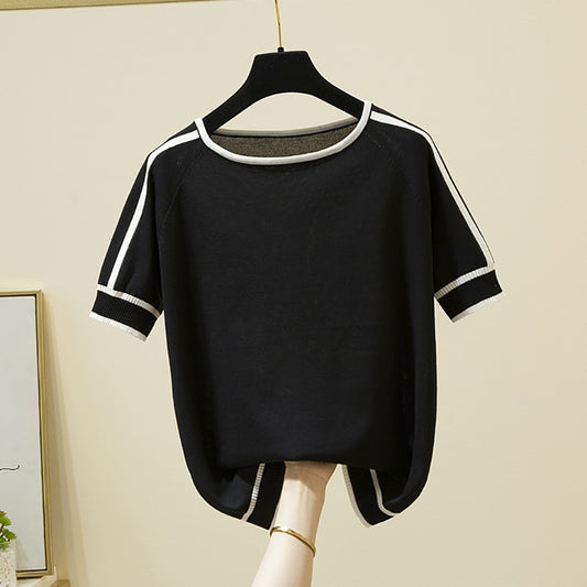 Camisetas Mujer 2021 Thin Knitted T Shirt Women Short Sleeve Summer Tops Woman Clothes Striped Fashion T-Shirt Tee Shirt Femme